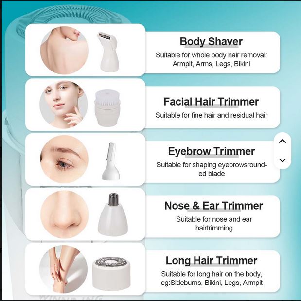 β 5-in-1 Multi-Function Heads β Face, legs, underarms, bikini & more